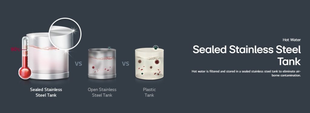 LG PuriCare™ S2 menyediakan air minuman bersih dengan menggunakan penapisan air terus. Tanpa batasan tangki air, anda boleh bergantung pada bekalan air minuman yang berterusan walaupun pada masa permintaan tinggi.