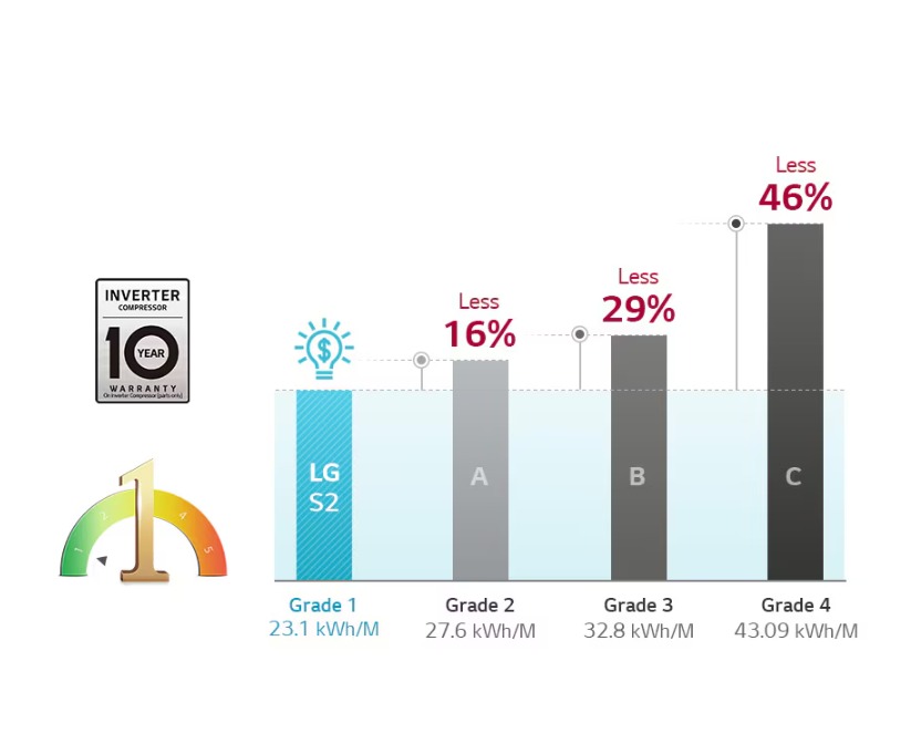 LG PuriCare™ S2 menyesuaikan teknologi canggih Sistem Pemampat Inverter untuk membekalkan air sejuk sambil menjimatkan tenaga. Ia juga merupakan yang pertama dalam industri yang menawarkan waranti pemampat selama 10 tahun untuk penulen air.