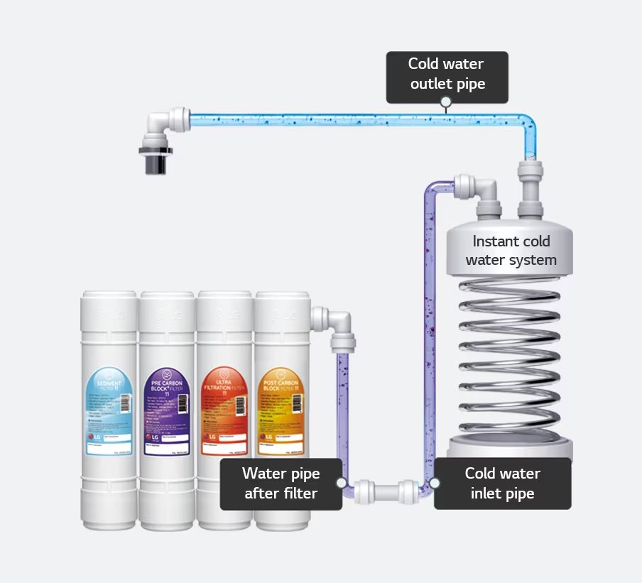 Hanya LG PuriCare™ S2 membantu meningkatkan kebersihan dengan perkhidmatan penggantian paip tahunan untuk memastikan air anda selamat.