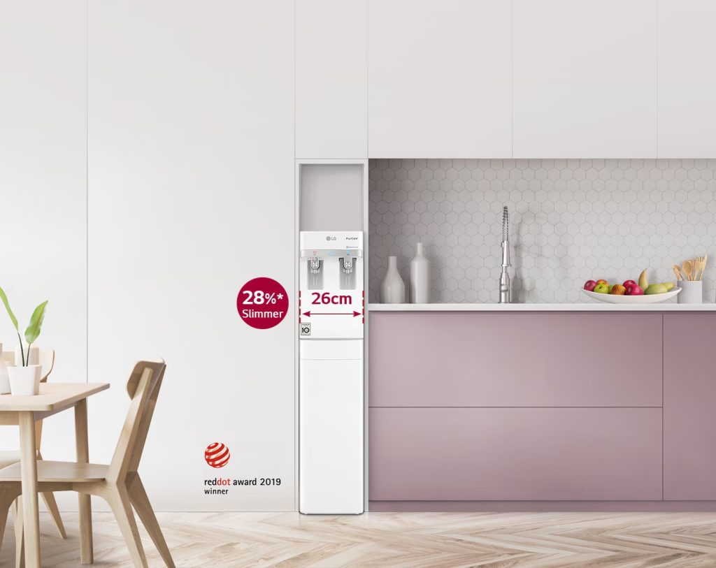 Reka bentuk super nipis LG PuriCare™ S2 menjadikannya mudah untuk dipasang di mana-mana sahaja di dapur anda tanpa perlu bersusah payah.