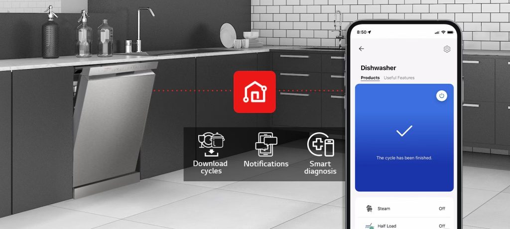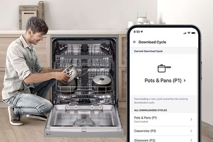 Peribadikan tetapan mesin pencuci pinggan anda melalui aplikasi LG ThinQ™ terus dari peranti pintar anda.