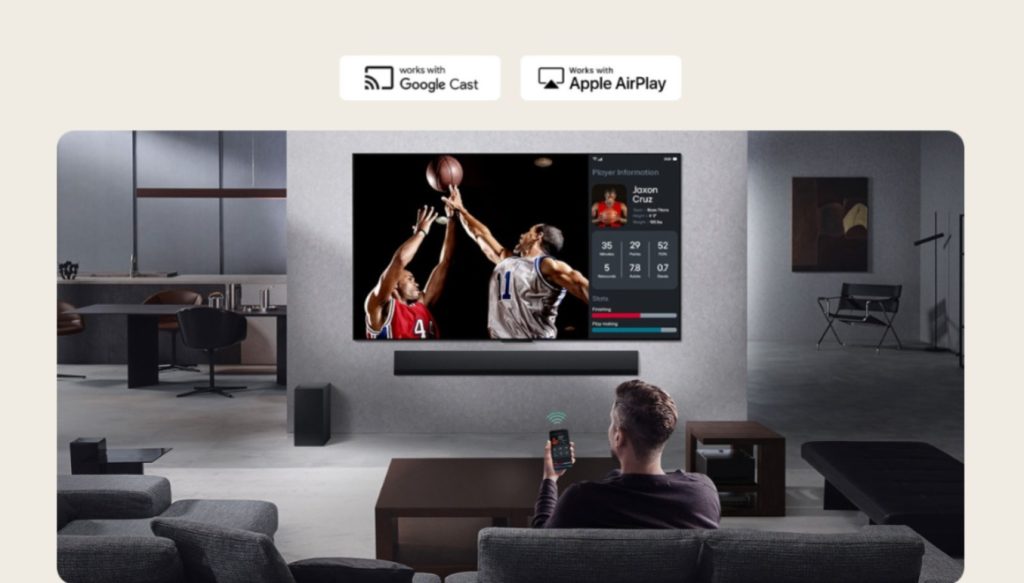 Hanya guna TV LG anda — AI akan cipta pengalaman bunyi seolah‑olah datang dari sekeliling, macam speaker 9.1.2 channel.
