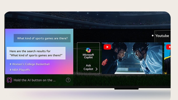 Tekan butang AI sekali saja pada remote untuk akses AI Concierge — ia akan beri cadangan dan kata kunci khas yang disesuaikan ikut sejarah carian dan tontonan anda.